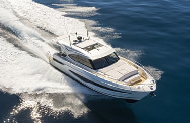 A luxurious all-weather living space that combines the open-air freedom of a covered cockpit with the sanctuary of a saloon.